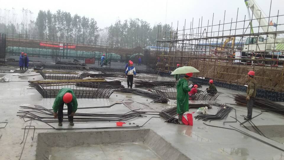 今年下半年以來(lái),臨泉縣頻繁降雨,連續的陰雨天氣給正處于基礎階段的現場(chǎng)施工造成了很大困難,然而面對惡劣天氣的考驗,項目管理人員沒(méi)有絲毫懈怠。在項目生產(chǎn)經(jīng)理周惠禹的帶領(lǐng)下,大家穿膠鞋、披雨衣、踩著(zhù)泥濘,奔波在一線(xiàn),奮戰在雨天,督導現場(chǎng)施工。