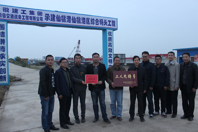 最后,考核組對安徽交航仙桃港碼頭項目進(jìn)行“工人先鋒號”授牌儀式,徐主席還特地為長(cháng)期奮戰在偏遠地區的項目職工送來(lái)了2000元“職工書(shū)屋”專(zhuān)項基金。