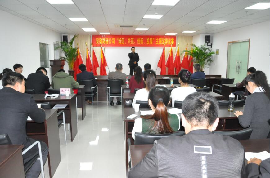 11月15日下午,由安徽路港公司團委主辦的 “誠信、共贏(yíng)、創(chuàng )新、發(fā)展”主題演講比賽在安建大廈22樓會(huì )議室拉開(kāi)帷幕,來(lái)自基層各單位和公司機關(guān)不同崗位的15名選手參加了比賽。安徽路港公司黨委書(shū)記馬斌、集團公司團委書(shū)記王詩(shī)旵應邀出席并講話(huà)。