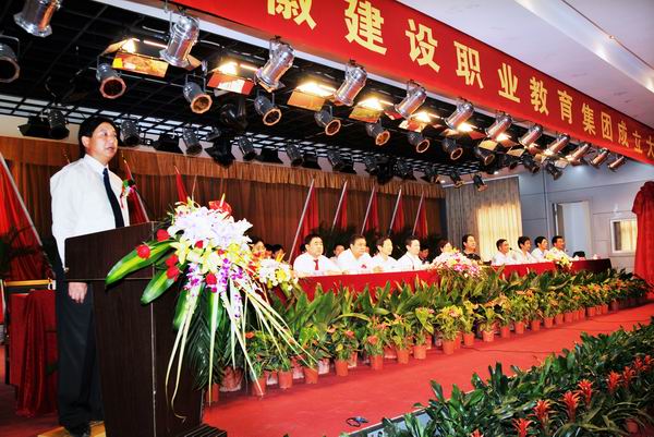 2010年5月26日,安徽建設學(xué)校高朋滿(mǎn)座,嘉賓云集。我省第一家建設類(lèi)職業(yè)教育集團——安徽建設職教集團在這里誕生、起航!省政府副秘書(shū)長(cháng)張武揚、省教育廳副廳長(cháng)江春、省住建廳巡視員李玉華、省國資委副巡視員張皖松、安徽建工集團董事長(cháng)胡運成、安徽省建設教育協(xié)會(huì )常務(wù)副會(huì )長(cháng)馬前光等領(lǐng)導出席了成立大會(huì )。安徽建工集團副總經(jīng)理、安徽建設學(xué)校校長(cháng)王禮義主持大會(huì )。
