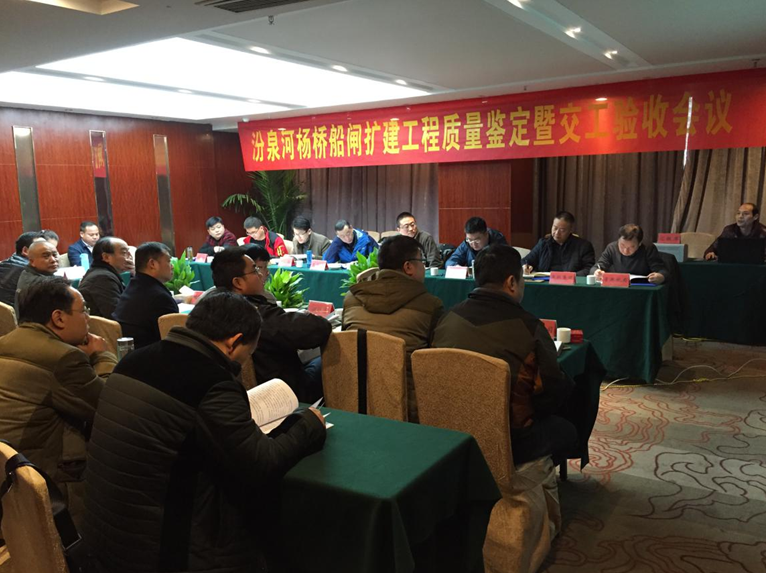 2016年12月23日,沙潁河航道汾泉河楊橋船閘擴建工程項目質(zhì)量鑒定暨交工驗收會(huì )議順利召開(kāi),安徽省交通運輸廳外資項目管理辦公室、安徽省港航建設投資集團有限公司、安徽省交通建設工程質(zhì)量監督局、安徽省港航管理局等相關(guān)單位負責同志參加交工驗收會(huì )議,安徽路港公司副總經(jīng)理張瓊出席會(huì )議。