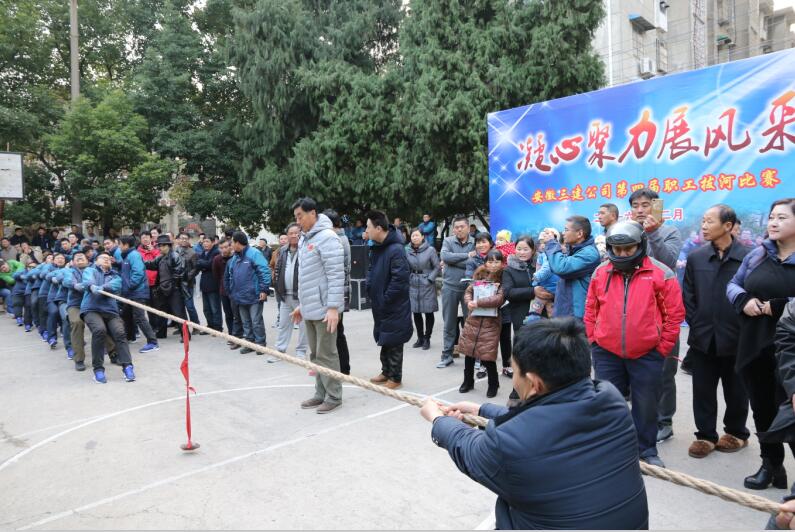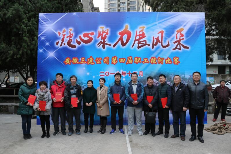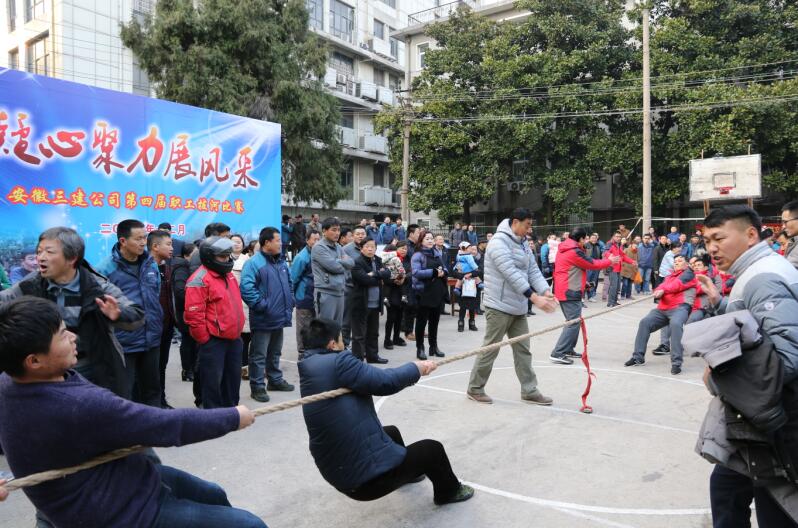 為豐富職工的業(yè)余文化生活,增強企業(yè)團隊凝聚力,安徽三建公司在2017新年來(lái)臨之際,于12月29日在該司籃球場(chǎng)舉辦了一場(chǎng)主題為“凝心聚力展風(fēng)采”的第四屆職工拔河比賽。來(lái)自基層單位24支代表隊逾300多人參加。安徽三建公司領(lǐng)導黃麗春、陸春濤、李建成、唐永慧等觀(guān)看了比賽,并為獲獎代表隊頒獎。