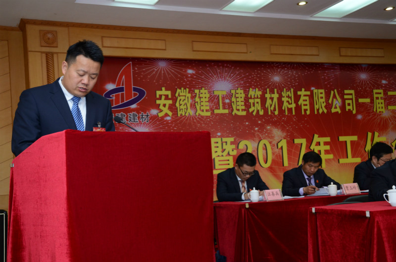 大會(huì )聽(tīng)取并審議通過(guò)了《總經(jīng)理工作報告》、《財務(wù)工作報告》、《業(yè)務(wù)招待費使用情況報告》、《安徽建工建筑材料有限公司薪酬管理制度》、《安徽建工建筑材料有限公司職工聯(lián)席會(huì )議制度》,簽訂了目標責任書(shū),表彰了2016年度先進(jìn)單位、先進(jìn)集體、先進(jìn)個(gè)人;集團黨委對公司領(lǐng)導班子成員進(jìn)行了2015—2016年度民主測評。