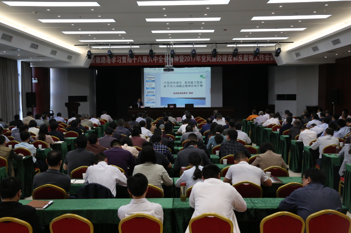 4月24日下午,安徽路港公司學(xué)習貫徹十八屆六中全會(huì )精神暨2017年黨風(fēng)廉政建設和反腐敗工作會(huì )議在安建大廈3樓會(huì )議室召開(kāi)。會(huì )議共分兩個(gè)階段舉行,集團公司領(lǐng)導、集團公司機關(guān)員工參加了第一階段的會(huì )議;公司領(lǐng)導班子成員、機關(guān)全體員工、分子公司領(lǐng)導班子成員、所屬各項目部項目經(jīng)理和黨支部書(shū)記參加了兩個(gè)階段的會(huì )議。