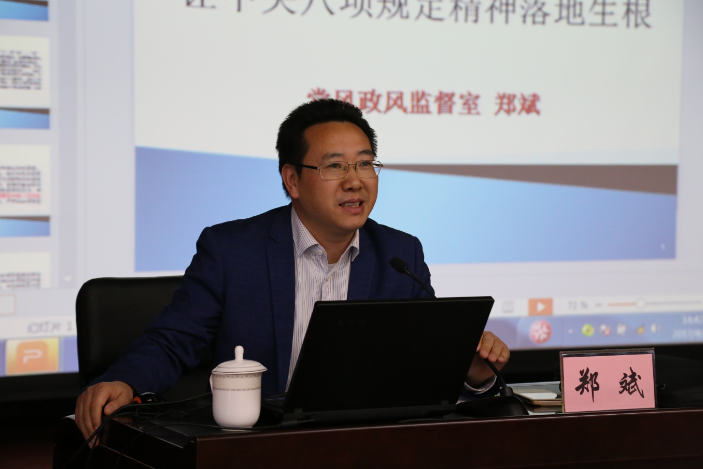會(huì )議第一階段由集團公司紀委書(shū)記宋志華主持,集團公司工會(huì )主席徐曉光、總法律顧問(wèn)申玉恩、集團公司機關(guān)員工應邀參加。安徽省紀委黨風(fēng)政風(fēng)監督室主任鄭斌為全體與會(huì )人員上了一堂題為《在堅持中深化,在深化中堅持,讓中央八項規定精神落地生根》的專(zhuān)題黨課。