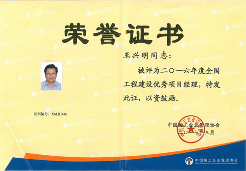 該獎項是由中國施工企業(yè)管理協(xié)會(huì )組織的全國性評優(yōu)活動(dòng),旨在表彰全國工程建設項目管理方面取得突出成績(jì)的先進(jìn)典型,是建筑施工領(lǐng)域的個(gè)人最高榮譽(yù)。本次評審經(jīng)專(zhuān)家對所有參評人員的各項考核指標進(jìn)行嚴格的審核和評定后,最終在全國范圍內共評出2016年度全國優(yōu)秀項目經(jīng)理829名,王興明是我公司獲此殊榮的唯一一名同志。該獎項的獲得是對該同志近年來(lái)立足崗位、積極發(fā)揮技術(shù)專(zhuān)長(cháng)、努力爭先創(chuàng )優(yōu)并作出顯著(zhù)貢獻和業(yè)績(jì)的肯定。