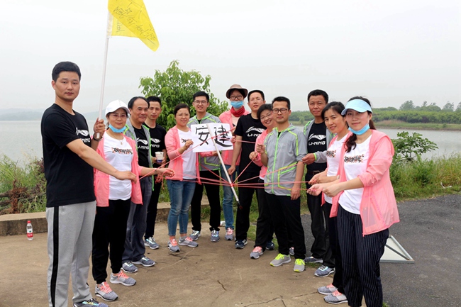 “盲人方陣”中,團隊成員要蒙上眼睛在規定的時(shí)間內尋找到幾段分開(kāi)的繩子并組成一個(gè)正方形,極大考驗了團隊成員間的溝通協(xié)調與配合能力,“夢(mèng)筆生花”由團隊成員分別持繩、共同“執筆”寫(xiě)下“安建”兩個(gè)字,除了要有耐心,還要步調協(xié)調一致?!案呖諗鄻颉笨简炛?zhù)大家的勇氣,“挑戰150”則讓所有成員共同體會(huì )到了統籌規劃的重要性。拓展活動(dòng)中,大家拋開(kāi)了性別、年齡、職級的限制,真正做到了全身心投入,心往一處想,勁往一處使,克服重重困難,享受著(zhù)完成目標所帶來(lái)的喜悅和滿(mǎn)足感。