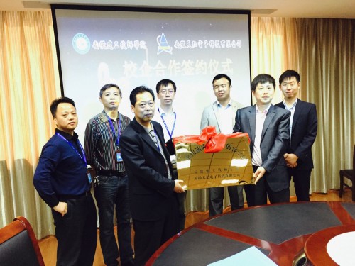 2017年5月5日上午8:30分,技師學(xué)院與安徽天弘電子科技有限公司校企合作簽約暨揭牌儀式在學(xué)院三樓會(huì )議室舉行。來(lái)自企業(yè)方代表安徽天弘電子科技有限公司總經(jīng)理賈昌云一行四人,技師學(xué)院分管教學(xué)副院長(cháng)周元清、機電系黨支部書(shū)記李波、副主任曹新彩、助理江東波、教研主任周隆興出席簽約儀式。簽約儀式由李波書(shū)記主持,周元清副院長(cháng)親自為雙方合作共建的3D成型創(chuàng )客空間揭牌,曹新彩副主任與賈昌云總經(jīng)理代表雙方在本著(zhù)“優(yōu)勢互補,資源共享,互惠雙贏(yíng),共同發(fā)展”的原則下簽署校企合作協(xié)議書(shū)。
