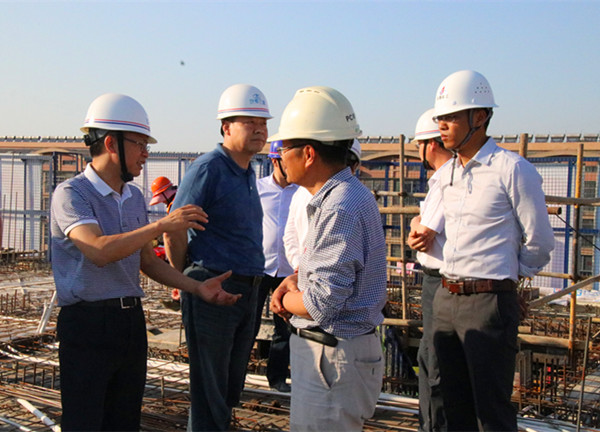 廖玉平一行在錦繡花園三期施工現場(chǎng)調研裝配式建筑施工