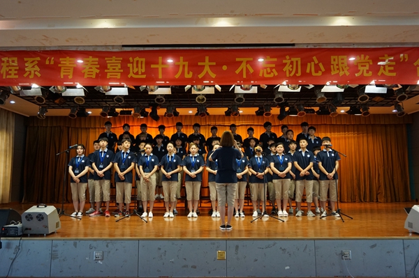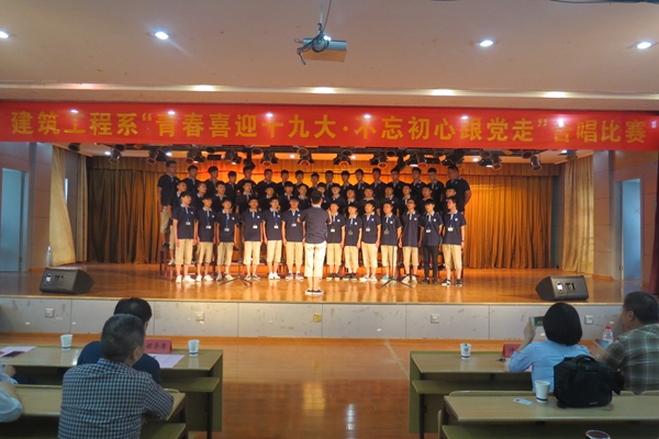 比賽中,每支隊伍的合唱曲目包括一首指定歌曲《中國共青團團歌》和一首自選歌曲。伴隨著(zhù)富有節奏的指揮,雄壯的《光榮啊,中國共青團》縈繞在會(huì )場(chǎng)中,同學(xué)們用鏗鏘有力的聲音表達了對黨的崇高信仰以及作為共青團員的自豪與擔當;在自選曲目環(huán)節,各支隊伍紛紛唱起準備已久的紅歌,《彈起我心愛(ài)的土琵琶》,引領(lǐng)我們重溫了那段崢嶸歲月,嘹亮的歌聲喚起了我們慷慨報國的凌云壯志,氣勢磅礴的合唱博得了現場(chǎng)陣陣熱烈的掌聲;《人民武警英雄的兵》唱出了人民子弟兵熱愛(ài)祖國、熱愛(ài)人民、熱愛(ài)和平的一腔赤誠熱血;《茉莉花》節奏輕悠舒緩,抒發(fā)了青年學(xué)生對青蔥歲月的無(wú)限遐想......比賽期間,臺上的同學(xué)們熱情洋溢,聲音洪亮;指揮員手勢準確,富有激情;臺下觀(guān)眾掌聲不斷,一次次將比賽推向高潮。隨風(fēng)飄揚的是歷史的歌聲,是那些祖祖輩輩留下的紅歌,它象征的是希望!無(wú)論是哪一個(gè)系部的演出,都令在場(chǎng)的觀(guān)眾印象深刻!