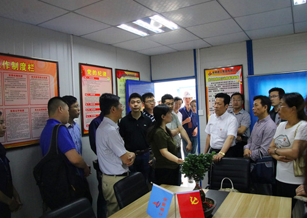 會(huì )前,組織觀(guān)摩了臨廬現代產(chǎn)業(yè)園南園安置區一標段項目工程建設現場(chǎng)和黨員活動(dòng)室、職工書(shū)屋等主要場(chǎng)所。在該項目負責人的講解引領(lǐng)下,觀(guān)摩人員認真參觀(guān)了施工工地現場(chǎng),重點(diǎn)對項目工序組織、安全質(zhì)量管控、文明施工管理、樣板工程引路、現場(chǎng)專(zhuān)業(yè)防護、現場(chǎng)揚塵治理等進(jìn)行了深入了解學(xué)習。 在黨員活動(dòng)室,與會(huì )人員 對室內嚴格按照“八個(gè)標準化建設”之活動(dòng)場(chǎng)所建設要求懸掛的黨的權利、義務(wù)、誓詞、黨旗、黨建制度、黨的紀律和黨的組織機圖,硬件實(shí)施完備、規章制度健全、整體布局美觀(guān)等給予了高度評價(jià)和一致認可。大家紛紛表示,該項目的標準化建設為其提供了很好的樣板和典范,要研究借鑒這些先進(jìn)經(jīng)驗和做法,采取得力措施,進(jìn)一步提升所在支部標準化管理水平。