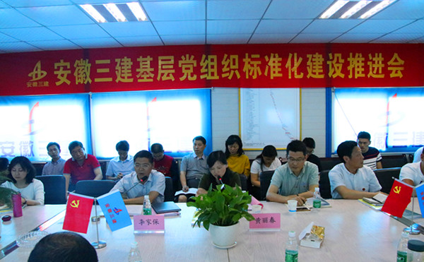 觀(guān)摩結束后,現場(chǎng)召開(kāi)黨組織標化建設推進(jìn)會(huì )。會(huì )上,三建公司黨工部針對《安徽三建工程有限公司基層黨組織標準化建設一本通》和《安徽三建工程有限公司基層黨組織標準化建設指導手冊》等有關(guān)內容圍繞組織體系設置、班子隊伍建設、黨員教育管理、黨內組織生活、發(fā)揮作用途徑、活動(dòng)場(chǎng)所建設、黨內運行機制及基本工作保障等八個(gè)方面進(jìn)行了逐條解讀并就有關(guān)問(wèn)題進(jìn)行了解答;一公司海南分公司通過(guò)視頻短片的形式展現了其開(kāi)展的“激揚青春、放飛夢(mèng)想”演講比賽、先進(jìn)事跡報告會(huì )、革命傳統教育等系列“紅五月”活動(dòng)的成果;八公司臨泉聯(lián)合黨支部圍繞八個(gè)方面標準化建設以題為《構建基層標準化黨組織 強化基層黨建服務(wù)力量》通過(guò)PPT的形式,形象直觀(guān)地介紹了在黨組織標準化建設和項目黨建服務(wù)品牌創(chuàng )建中的經(jīng)驗做法。