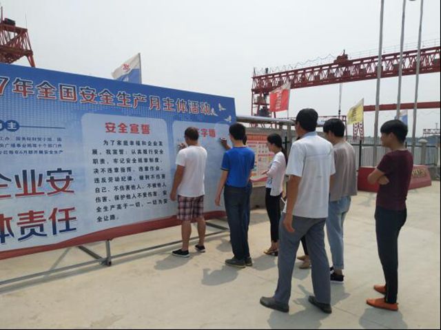 (圖為安徽路港合寧預制標項目部舉辦“安全生產(chǎn)月”宣誓簽名活動(dòng))