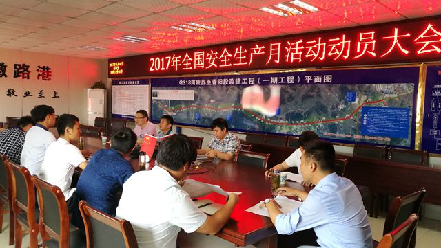 (圖為安徽路港G318改建工程項目部召開(kāi)動(dòng)員會(huì )并舉行宣誓簽名儀式)