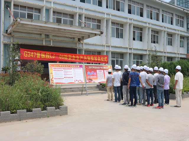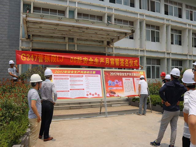 (圖為安徽路港G347普縱段項目部舉行“安全生產(chǎn)月”宣誓簽名活動(dòng))