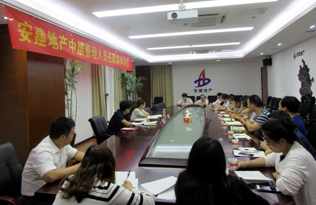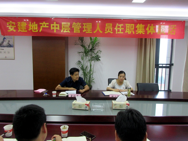6月5日下午,根據安建地產(chǎn)黨委安排和《干部任用選拔條例》等相關(guān)規定,公司組織即將履任新職的13名中層管理人員開(kāi)展任前廉潔談話(huà),集團公司副總經(jīng)理、安建地產(chǎn)黨委書(shū)記、董事長(cháng)霍向東、安建地產(chǎn)黨委委員、紀委書(shū)記陳小群和相關(guān)人員在公司第二會(huì )議室參加了談話(huà)。