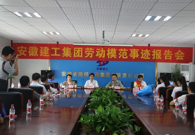 6月15日,安徽建工集團勞動(dòng)模范事跡報告團來(lái)到安徽路橋集團合安高速改擴建01標項目部,為項目員工作集團勞模先進(jìn)事跡報告。集團工會(huì )徐曉光主席,公司黨委委員、紀委書(shū)記、工會(huì )主席王勝利,財務(wù)總監鄧蕾等出席報告會(huì )。路橋集團機關(guān)及項目部共計50余人參加此次報告會(huì )。