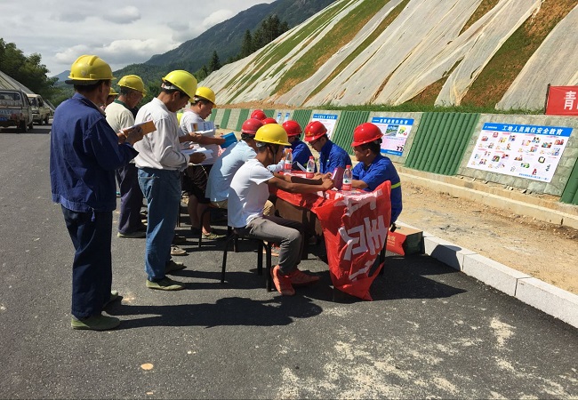 蕪合高速公路改擴建三標發(fā)放安全宣傳資料,強化一線(xiàn)工人安全意識,解答一線(xiàn)工人提出的有關(guān)安全問(wèn)題。