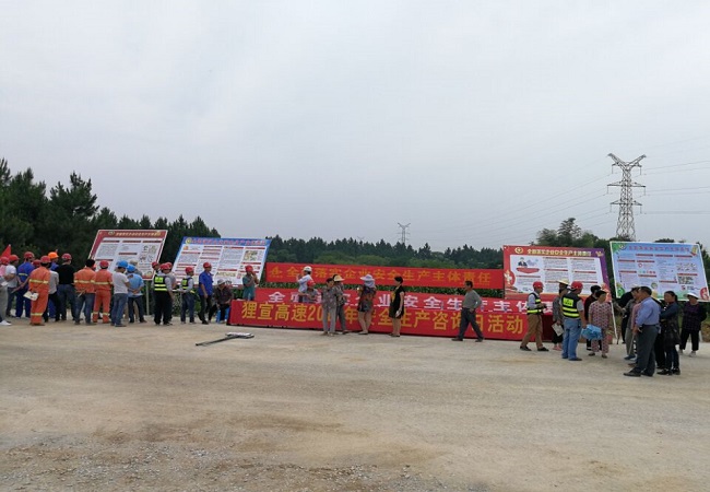 貍宣高速路面一標、二標聯(lián)合開(kāi)展安全生產(chǎn)月咨詢(xún)日活動(dòng),邀請業(yè)主、監理等單位參加,對本年度安全生產(chǎn)月展板講解及對周邊村民發(fā)放宣傳資料并開(kāi)展安全知識咨詢(xún)活動(dòng)。