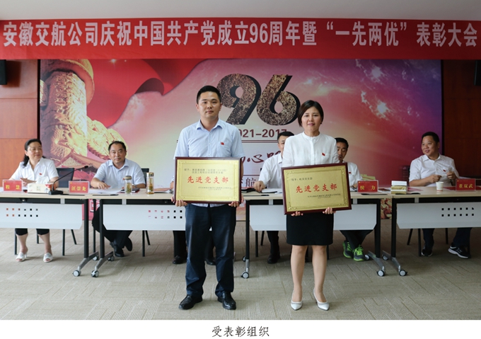 6月26日下午,安徽交航公司慶祝中國共產(chǎn)黨成立96周年暨“一先兩優(yōu)”表彰大會(huì )在肥隆重召開(kāi)。公司領(lǐng)導班子成員、黨委委員,各黨支部書(shū)記、副書(shū)記,“先進(jìn)黨支部”代表、“優(yōu)秀共產(chǎn)黨員”獲得者、“優(yōu)秀黨務(wù)工作者”獲得者,入黨積極分子以及機關(guān)全體工作人員參加會(huì )議。
