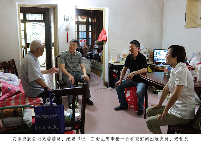 “七一”來(lái)臨之際,集團公司黨委、安徽交航公司黨委分別看望慰問(wèn)了安徽交航困難黨員、老黨員,給他們送去組織的問(wèn)候和節日的祝福,共同慶祝中國共產(chǎn)黨成立96周年。