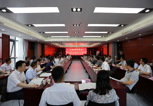 7月1日,安徽路橋集團在安建大廈8樓會(huì )議室召開(kāi)2017年第三季度生調產(chǎn)度會(huì )暨安委會(huì )擴大會(huì )議,公司領(lǐng)導班子成員、機關(guān)各部門(mén)負責人、各項目負責人及財務(wù)、安全工作負責人近80余人參加會(huì )議。會(huì )議由公司黨委委員、副總經(jīng)理錢(qián)葉琳主持。