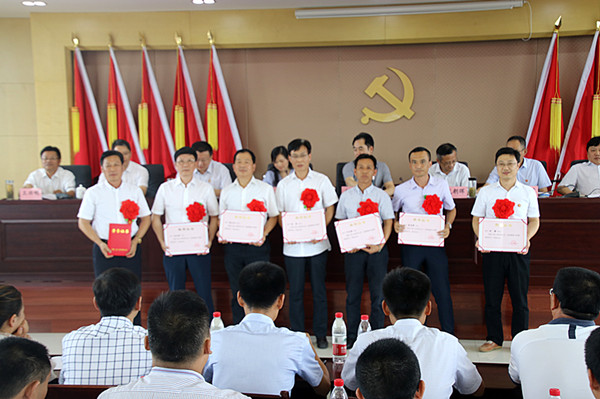 會(huì )上,舉行了預備黨員宣誓儀式,全體黨員重溫了入黨誓詞。黨委委員、總工程師武朝暉宣讀了公司黨委《關(guān)于表彰“先進(jìn)黨支部、優(yōu)秀共產(chǎn)黨員和優(yōu)秀黨務(wù)工作者”的決定》;對公司2016-2017年度先進(jìn)黨支部、優(yōu)秀黨員、優(yōu)秀黨務(wù)工作者進(jìn)行了表彰;吉興鋼、方中、涂成國、張志剛、潘寶紅、張思磊等六名同志作為先進(jìn)黨支部和優(yōu)秀黨員代表結合各自的工作,介紹了基層黨建工作的經(jīng)驗和各自的先進(jìn)事跡。公司黨委書(shū)記、董事長(cháng)、總經(jīng)理左登宏在會(huì )上作了重要講話(huà)。