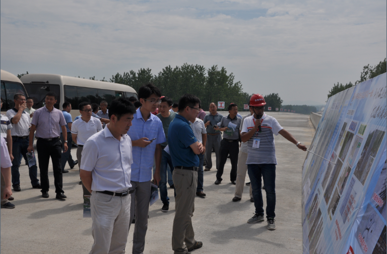 項目總工向觀(guān)摩團簡(jiǎn)要介紹了工程概況、施工組織、橋梁工程施工精細化控制措施等。聽(tīng)完介紹后,觀(guān)摩團隊伍駐足觀(guān)看了宣傳展板,紛紛舉起相機、手機記錄項目建設的先進(jìn)做法,并對滁定01標路基橋梁質(zhì)量可控、安全管理有保障、新技術(shù)、新工藝、新材料應用,安全質(zhì)量管理程序化、施工現場(chǎng)安全防護標準給予高度評價(jià)。