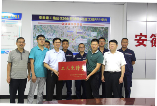 2017年7月20日上午,安徽建工集團工會(huì )副主席吳曉伍蒞臨安徽建工集團G206(舒城段)改建工程項目部開(kāi)展“安徽建工集團工人先鋒號”工程創(chuàng )建驗收工作,安建建設黨委書(shū)記王可武、工會(huì )主席汪樂(lè )生及公司黨群部門(mén)負責同志陪同。