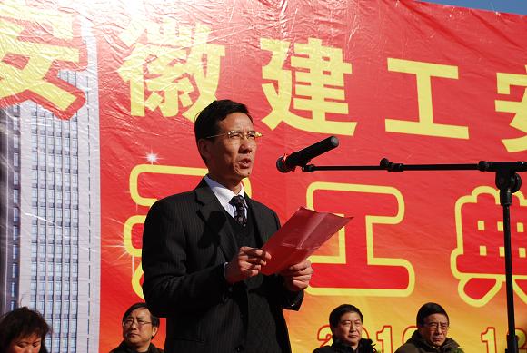 開(kāi)工典禮上,安徽建工集團董事長(cháng)胡運成發(fā)表了充滿(mǎn)激情的講話(huà)。他說(shuō):“記得2003年7月28日,是安徽建工歷史上一個(gè)難忘的日子。集團機關(guān)從建設廳大院搬遷到建工大廈集團本部,擁有了自己的辦公樓,從此,我們開(kāi)始了改革脫困的艱難征程。7年來(lái),我們堅持解放思想,與時(shí)俱進(jìn),按照“脫胎換骨、二次創(chuàng )業(yè)”系統改造企業(yè)的思路,以發(fā)展為主線(xiàn),以創(chuàng )新為動(dòng)力,以改革為突破口,完善戰略,提升文化,整合資源,調整結構,強化管理,加強黨建和精神文明建設,全面推進(jìn)企業(yè)進(jìn)步,在充分競爭的市場(chǎng)環(huán)境下,連續7年實(shí)現了跨越式發(fā)展。7年后的今天,我們站在又一個(gè)新的起點(diǎn),即將開(kāi)始“十二五”的征程。我們即將開(kāi)工建設一座現代化的新辦公樓——安建大廈。這標志著(zhù)安徽建工“泥瓦匠住草房”的時(shí)代即將結束?!彼赋?,安建大廈的開(kāi)工,是安徽建工發(fā)展史上具有里程碑意義的大事、喜事。大廈的建設對于優(yōu)化集團資產(chǎn)結構和資源配置,改善辦公環(huán)境,保障機關(guān)高效有序運轉,樹(shù)立企業(yè)形象,實(shí)施品牌戰略,提升安徽建工的知名度和美譽(yù)度,增強發(fā)展能力和發(fā)展后勁,推動(dòng)集團又好又快發(fā)展,實(shí)現二次創(chuàng )業(yè)目標具有非常重要的意義。