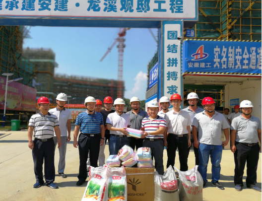 7月25日,集團公司總經(jīng)理助理、安建地產(chǎn)總經(jīng)理楊斌,工會(huì )主席龍華一行赴宿松公司龍溪觀(guān)邸項目“送清涼”