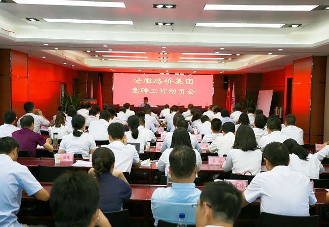8月26日下午,安徽路橋集團在安建大廈八樓第一會(huì )議室組織召開(kāi)競聘上崗工作動(dòng)員會(huì )。公司黨委書(shū)記、董事長(cháng)、總經(jīng)理盛明宏出席會(huì )議并做重要講話(huà),紀委書(shū)記、工會(huì )主席王勝利主持會(huì )議并做動(dòng)員講話(huà)。公司職工代表、機關(guān)各部門(mén)主管及以上員工、攀成德咨詢(xún)公司有關(guān)人員等70余人參加了會(huì )議。