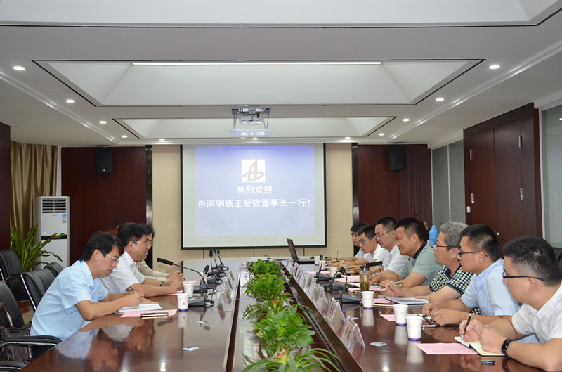 2017年8月30日下午,徐州東南鋼鐵工業(yè)有限公司王愛(ài)欽董事長(cháng)一行來(lái)我公司洽談業(yè)務(wù)。公司董事長(cháng)、黨委書(shū)記、總經(jīng)理張鍵熱情接待了王總一行并主持召開(kāi)了業(yè)務(wù)洽談會(huì )。
