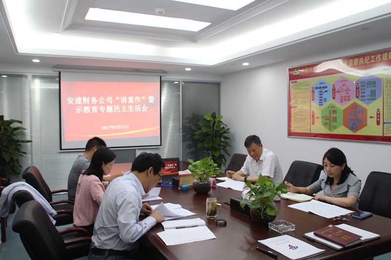 8月31日上午,安建財務(wù)公司召開(kāi)“講重作”警示教育專(zhuān)題民主生活會(huì )。會(huì )議由公司黨總支書(shū)記、副總經(jīng)理潘琳主持,集團公司總會(huì )計師牛曉峰、紀委相關(guān)人員到會(huì )指導。
