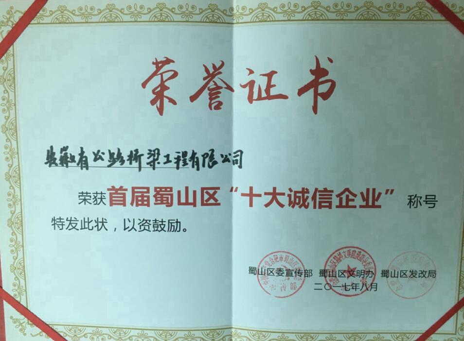 8月28日,由蜀山區委宣傳部、蜀山區文明辦、蜀山區發(fā)改局聯(lián)合主辦的首屆“十大誠信企業(yè)”和“十大誠信個(gè)人”頒獎活動(dòng)在合肥隆重舉行,安徽路橋公司榮獲“十大誠信企業(yè)”稱(chēng)號,區委書(shū)記李學(xué)明為公司頒獎,總經(jīng)濟師楊文柱代表公司出席大會(huì )并上臺接受領(lǐng)獎。