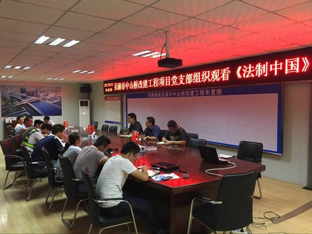 (圖為蕪湖市中山橋項目黨支部組織觀(guān)看《法制中國》紀錄片)