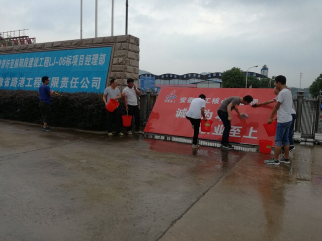 (圖為G347普縱段項目黨支部組織黨員、團員青年清洗宣傳標牌及安全標識標牌,整理擺放安全設施)