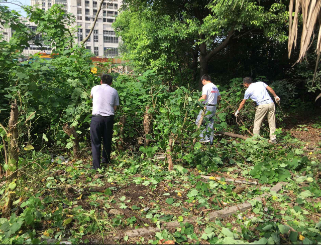 ?。▓D為租賃分公司黨支部黨員組織黨員清理院內衛生)