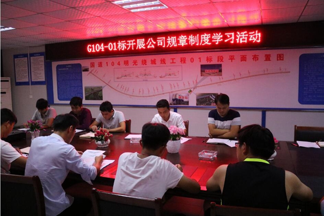 (圖為G104明光繞城線(xiàn)項目黨支部組織學(xué)習公司規章制度)