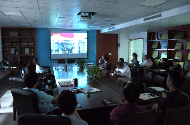 (圖為公司機關(guān)第二黨支部開(kāi)展“重規矩,我們怎么做”專(zhuān)題研討,集中觀(guān)看專(zhuān)題片《大國外交》)