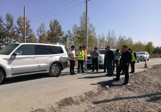 居瑪哈孜·哈德?tīng)杽e克常委一行沿著(zhù)支線(xiàn)逐點(diǎn)查看,詢(xún)問(wèn)了當前項目的征地拆遷和施工難點(diǎn)情況。在了解到我部已經(jīng)開(kāi)展2公里土方及8道涵洞工程施工后,博州黨委領(lǐng)導對我部迅速開(kāi)展國防路施工表示認可,對項目部所作的安全防護工作提出了褒獎,同時(shí)強調施工人員要高度重視安全問(wèn)題,一定要將施工過(guò)程中的潛在危險降低到最低。居瑪哈孜·哈德?tīng)杽e克常委在現場(chǎng)勘察施工進(jìn)度時(shí)指出,當下是博州交通運輸系統“大干50天”之際,地方政府與施工單位要緊密合作,確保征地拆遷與現場(chǎng)施工齊頭并進(jìn),保證完成年底節點(diǎn)任務(wù)目標。
