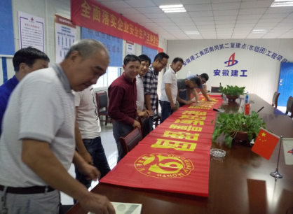 三是舉行“開(kāi)展質(zhì)量提升行動(dòng),建設質(zhì)量強國”的質(zhì)量簽名活動(dòng)。9月8日項目部印制了“開(kāi)展質(zhì)量提升行動(dòng),建設質(zhì)量強國”條幅,由項目部管理人員和勞務(wù)公司及專(zhuān)業(yè)分包單位管理人員在條幅上簽名,做到質(zhì)量管理全員參與、全員承諾。