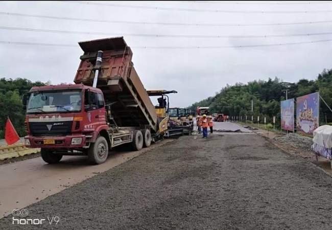 黃山市歙黟路節日期間進(jìn)行水穩施工