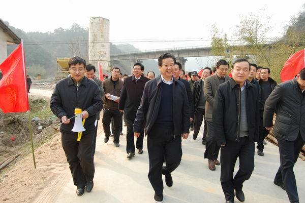 4日上午,黃省長(cháng)一行來(lái)到黃祁高速08標視察。黃省長(cháng)聽(tīng)取了項目有關(guān)情況介紹,對該項目建設給予了高度評價(jià),并就該項目跨鐵路施工方案與建設單位交換了意見(jiàn),要求做好協(xié)調服務(wù)工作,確保工程早日建成,早日發(fā)揮作用。