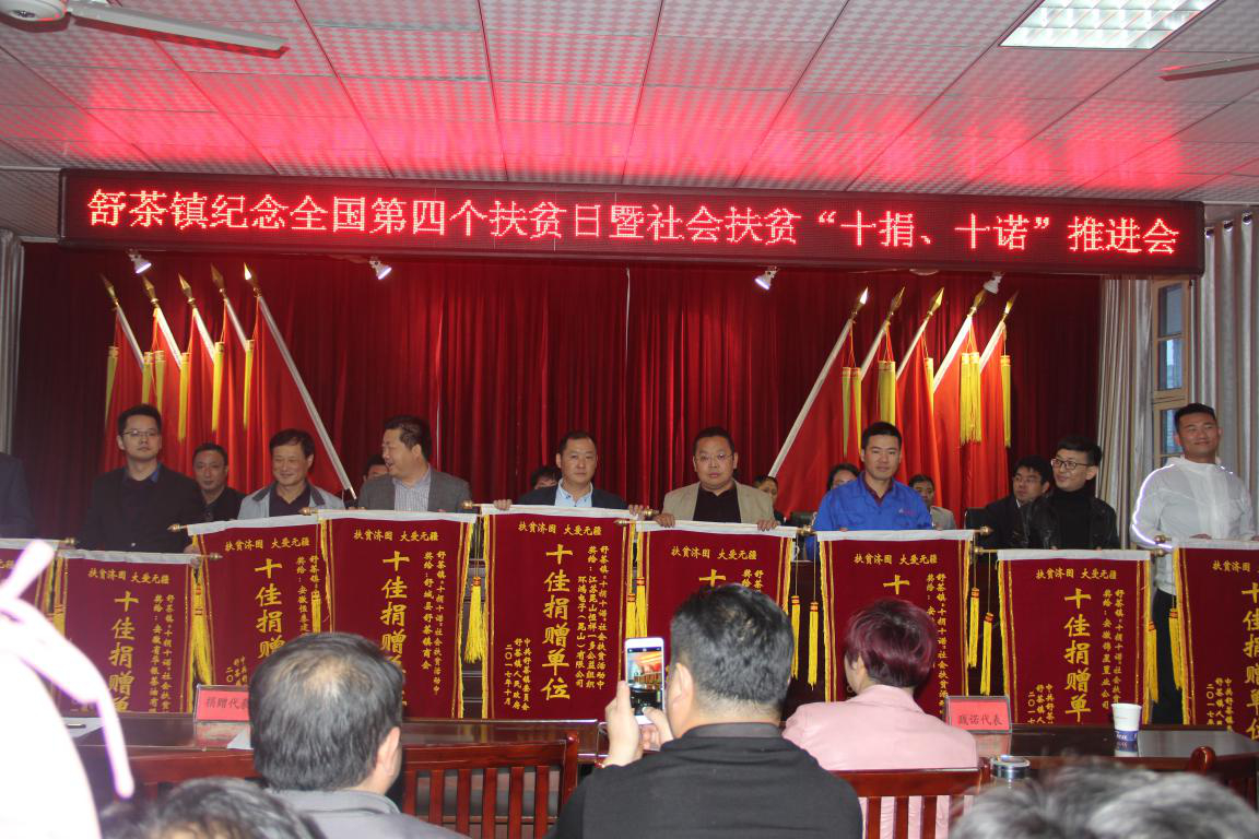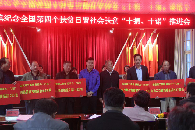 10月17日上午,安徽建工集團G206項目經(jīng)理張魁出席舒茶鎮紀念全國第四個(gè)扶貧日暨社會(huì )扶貧“十捐、十諾”推進(jìn)會(huì ),公司榮獲舒茶鎮“十佳捐贈”單位稱(chēng)號。