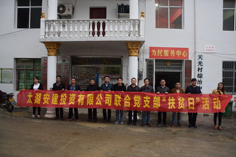 10月19日,在黨的十九大勝利召開(kāi)之際,中共太湖安建投資有限公司聯(lián)合支部委員會(huì )與太湖縣交通運輸局共同組織開(kāi)展的精準扶貧活動(dòng)來(lái)到太湖縣牛鎮鎮天光村,以實(shí)際行動(dòng)向黨的十九大獻禮。