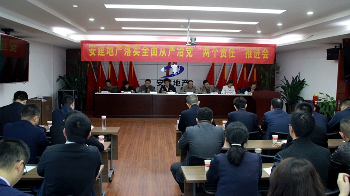 10月26日下午,安建地產(chǎn)召開(kāi)落實(shí)全面從嚴治黨“兩個(gè)責任”推進(jìn)會(huì ),深入學(xué)習貫徹黨的十九大精神,貫徹落實(shí)省委、省國資委黨委、集團黨委部署要求,對落實(shí)全面從嚴治黨主體責任監督責任進(jìn)行再動(dòng)員再部署。安建地產(chǎn)領(lǐng)導班子成員,機關(guān)各部門(mén)正副職,財務(wù)部、成本合約部、招標辦相關(guān)工作人員,所屬各單位領(lǐng)導班子成員、財務(wù)負責人參加會(huì )議。安徽建工集團總經(jīng)理助理、安建地產(chǎn)黨委副書(shū)記、總經(jīng)理楊斌主持會(huì )議。