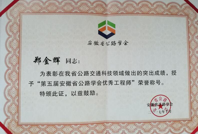“安徽省公路學(xué)會(huì )優(yōu)秀工程師”是我省公路交通行業(yè)科技領(lǐng)域的學(xué)術(shù)和技術(shù)帶頭人,是全省公路交通行業(yè)優(yōu)秀工程技術(shù)人員的代表。