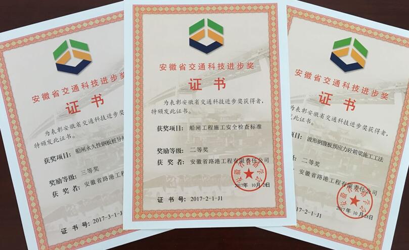 近日,由安徽路港公司完成的《波形鋼腹板預應力砼箱梁施工技術(shù)》、《船閘工程施工安全檢查標準》榮獲安徽省交通科技進(jìn)步獎二等獎,《船閘永久性鋼板樁導航墻施工技術(shù)》榮獲三等獎,同時(shí)鄭金輝同志被授予“安徽省公路學(xué)會(huì )優(yōu)秀工程師”榮譽(yù)稱(chēng)號。