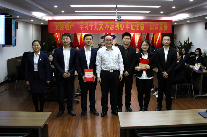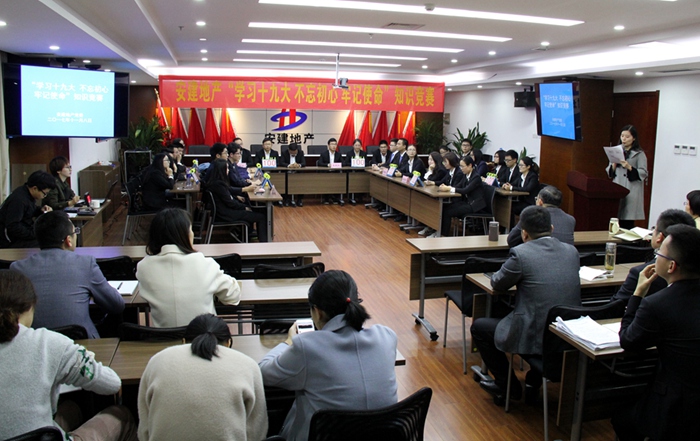 11月8日,安建地產(chǎn)在安建國際大廈21樓會(huì )議室組織開(kāi)展“學(xué)習十九大 不忘初心 牢記使命”知識競賽。安建地產(chǎn)所屬各單位共10支隊伍30名選手參加比賽。公司領(lǐng)導班子成員出席并為獲勝隊伍頒獎。